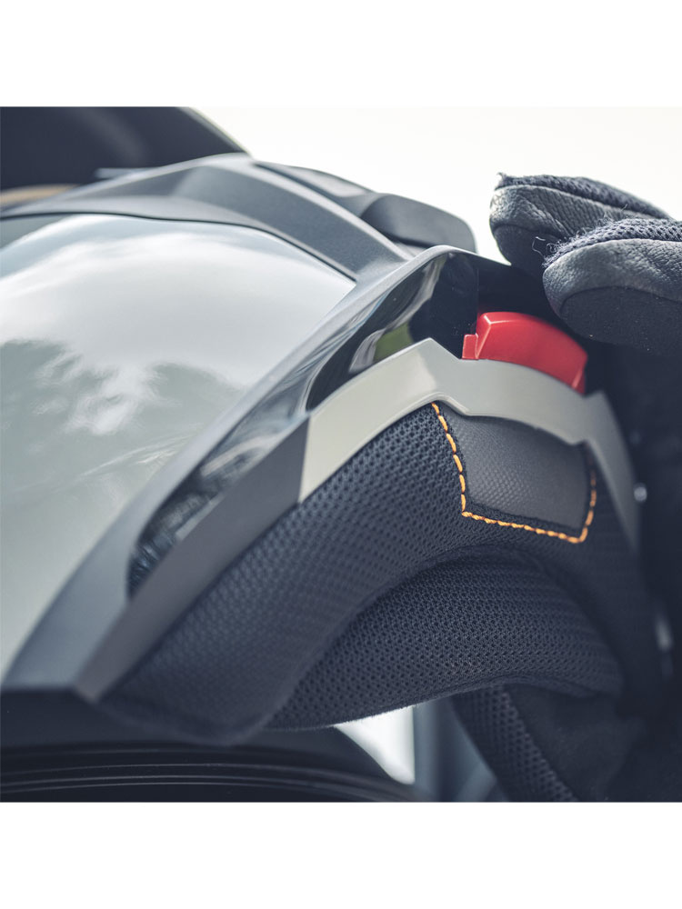 - Nowo zaprojektowany kołnierz umożliwia szybką wymianę wewnętrznej wyściółki oraz poprawia aeroakustykę kasku.