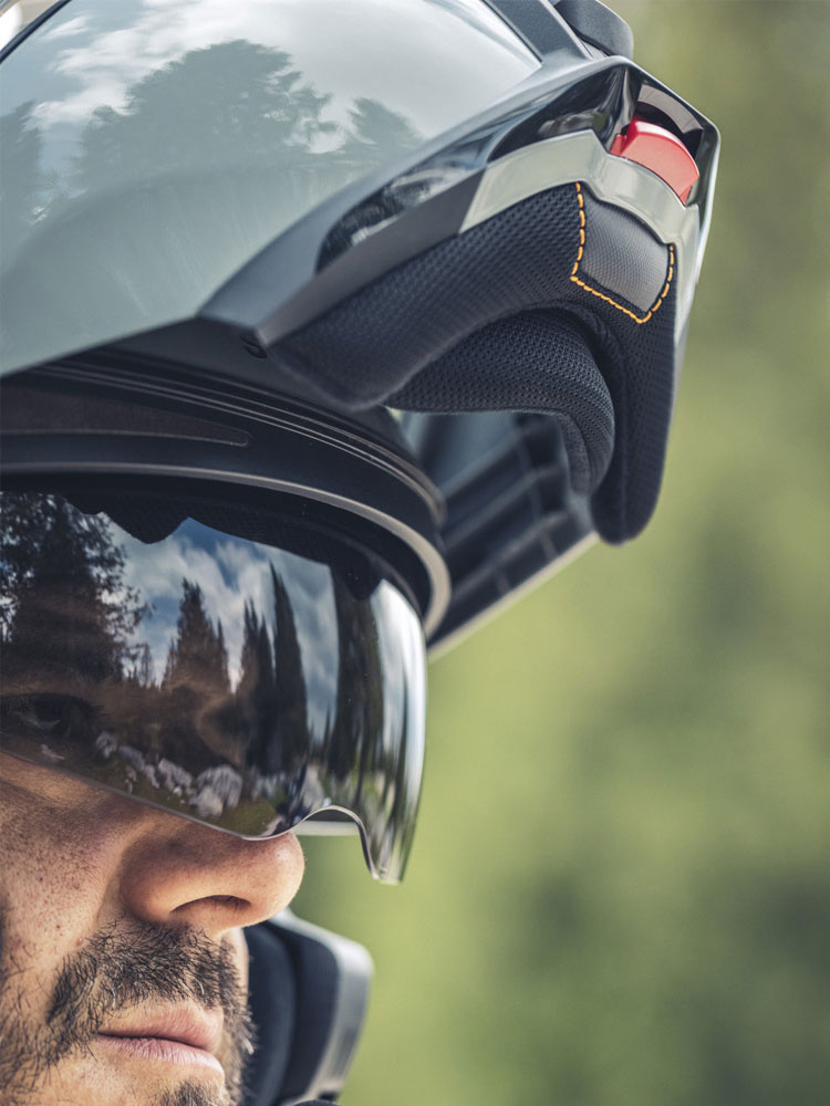 - Bezszwowa wyściółka Schuberth Individual pozwala na dopasowanie kasku według indywidualnych potrzeb. Możliwość zmiany grubości wyściółek bocznych i tylnej.