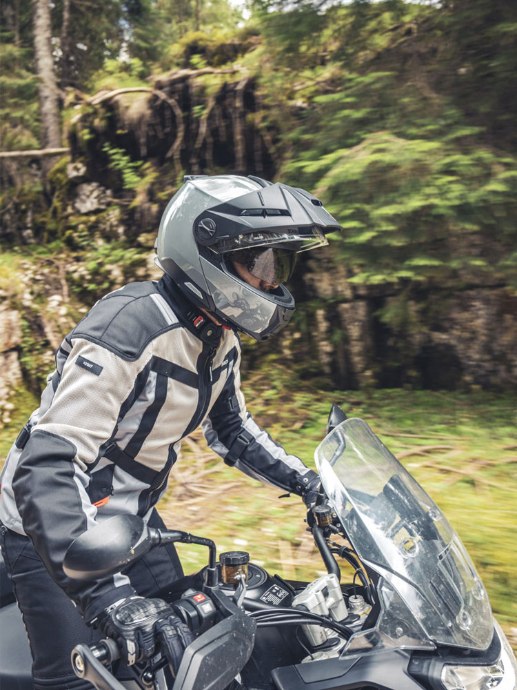 Odporny na zarysowania wizjer z poliwęglanu zapewnia szerokie pole widzenia i jest przystosowany do montażu Pinlocka (w zestawie) zapobiegającego parowaniu szyby. Kask posiada również blendę przeciwsłoneczną oraz regulowany daszek chroniący przed słońcem, a zaawansowany system wentylacji zapewnia optymalny przepływ powietrza i odprowadzenie ciepła na zewnątrz.